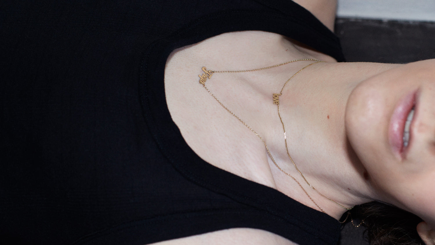 Love is you.'s signature necklace is inspired by thin, playful plate-shaped necklaces, like souvenirs found overseas.